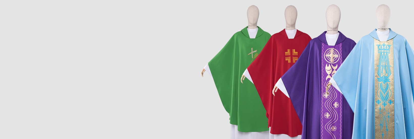 En tant que fabricant leader de vêtements dédiés au spirituel, nous proposons des modèles haut de gamme de vêtements liturgiques tels que soutanes, chasubles et aubes.