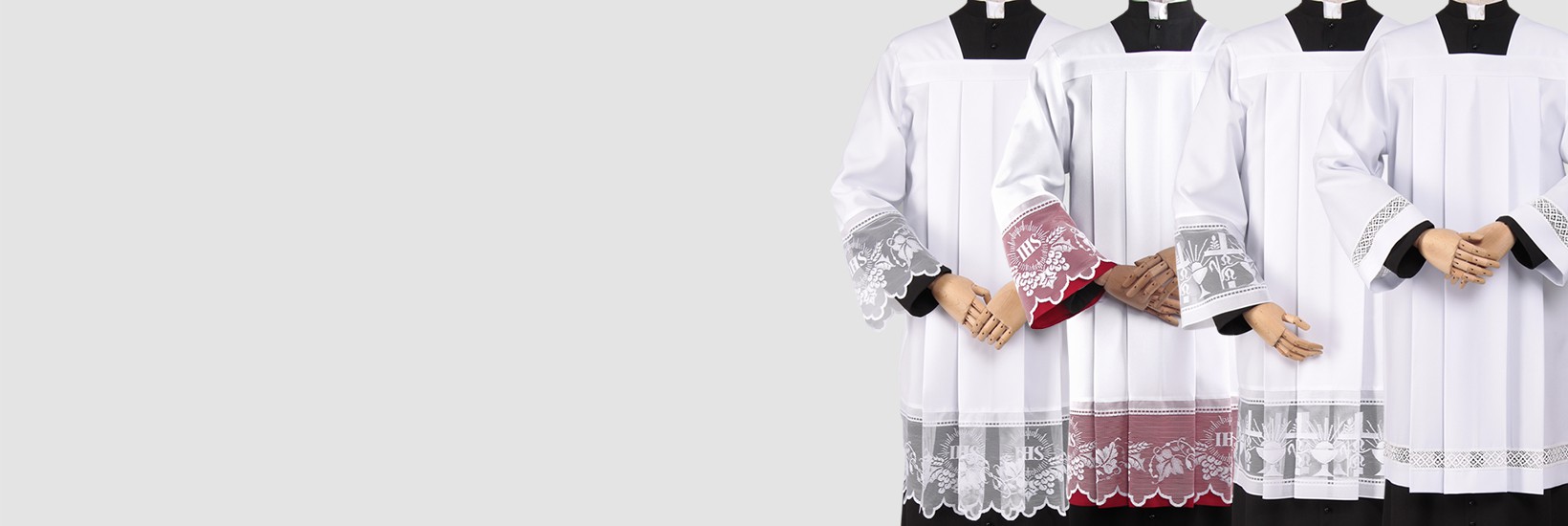 Nous avons de nombreuses années d'expérience dans l'habillage du clergé, ce qui nous permet d’etre à la pointe sur la mode sacrée. Le site vetementsliturgiques.fr est un lieu où les serviteurs de l'autel trouveront des soutanes haut de gamme, aubes, surplis, capes, robes en guipure, chemises et couvertures pour prêtres, chasubles, ainsi que des vêtements décontractés tels que des pulls molletonnés et des manteaux. Notre riche assortiment comprend également des accessoires - cordons, étoles, ceintures et matériel de couture. En essayant de répondre à vos exigences, nous proposons également des nappes et drapeaux d'autel.