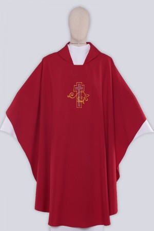 Belle chasuble rouge avec symbole liturgique brodé. La couleur de la chasuble fonctionne très bien avec la broderie qui se trouve à l’avant et à l’arrière. La chasuble rouge sera un choix parfait lors du service sacerdotal, pendant des messes ou autres rites d’église.