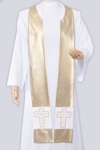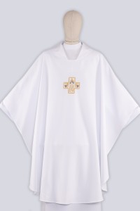 Les chasubles particulièrement remarquables dans notre large offre de produit sont celles avec de belles broderies soigneusement réalisées en forme de par exemple Signe de l’Eucharistie, de la croix, de l’épi ou d’une vigne. Cet habit, qui symbolise les devoirs sacerdotaux ainsi que sa dignité est fabriqué avec des matériaux de bonne qualité surtout de couleur blanc, crème ou or.