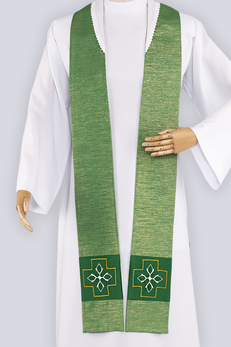 Dans le service sacerdotal, l’étole qui fait partie de la collection des étoles vertes est mise en dessous d’une chasuble, sur le surplis ou sur l’aube. L’étole présentée se distingue par un ornement élégant aux motifs liturgiques utilisés à l’église catholique romaine. L’étole sera parfaitement adaptée lors du service sacerdotal pendant le temps liturgique normal. L’étole sera un choix parfait lors du service sacerdotal en temps liturgique normal.