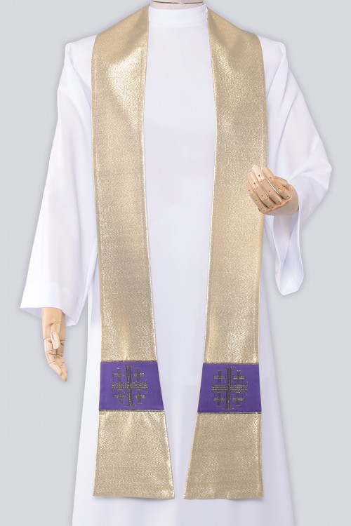 L’habit de base d’un religieux est une étole, l’exemplaire  visible sur la photo est utilisé lors du Carême. Cette étole a une croix dorée sur le cou, et des éléments décoratifs avec des symboles liturgiques. L’étole sera un choix parfait lors du service sacerdotal pendant la période de l'Avent et du Carême ainsi que les messes pour les morts.