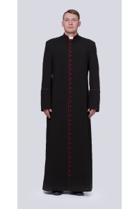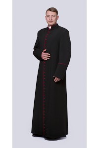 Les habits de chaque prêtre se déclinent en deux versions : solennels et quotidiens. L’habit quotidien se compose d’une soutane noire avec un liseré de couleur rouge. Nos vêtements liturgiques ont aussi des boutons et des trous de la couleur mentionnée. Les soutanes haut de gamme avec trois doubles plis sont fabriqués d’une toile légère et aéré ou d’une gabardine résistante. L’habit en toile est également renforcé avec des inserts italiens et possède une doublure sur le torse, dos et manches. Les deux versions de soutanes n’empêchent pas les mouvements et feront certainement leurs preuves dans l’usage quotidien.